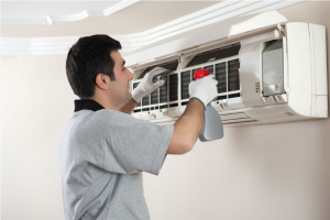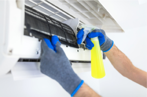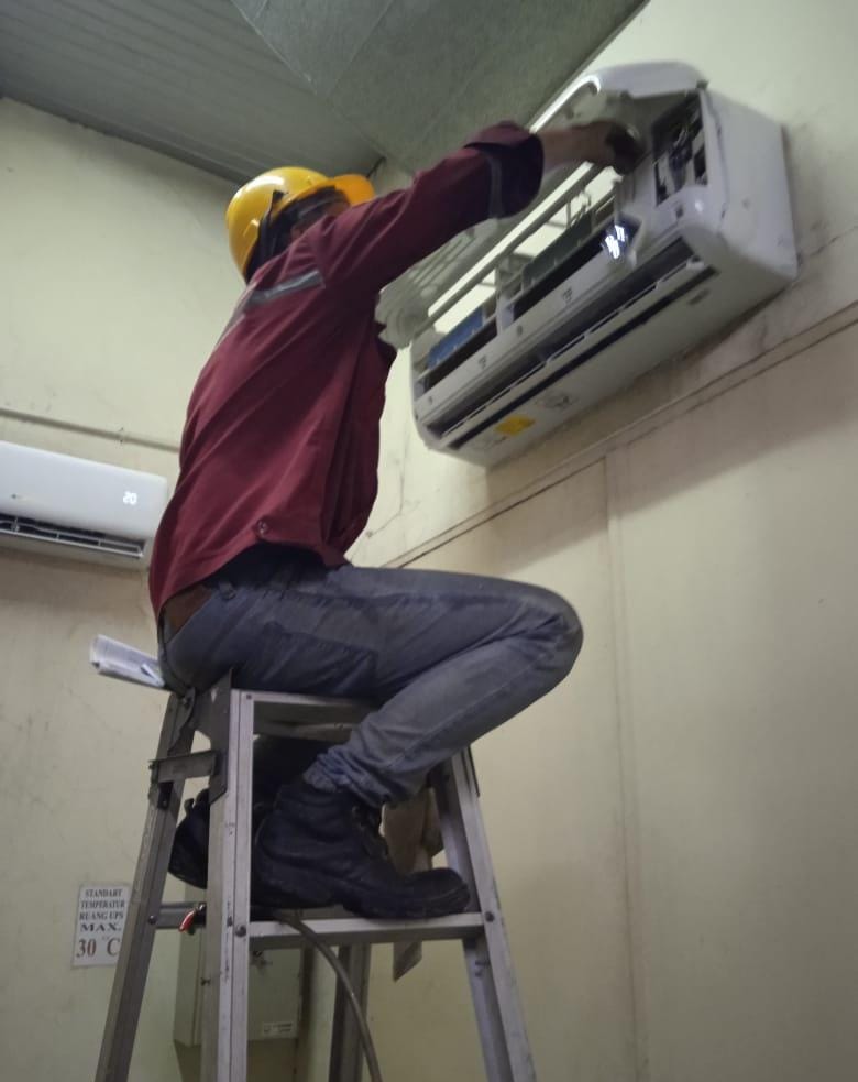 Pembersihan unit indoor dan outdoor AC, membersihkan saluran pipa drain dan filter udara serta memeriksa suhu AC.