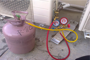 Kurangnya gas freon biasanya disebabkan oleh kebocoran pada pipa pendingin, apabila tidak ada kebocoran gas freon juga dapat berkurang dalam waktu 2-3 tahun.